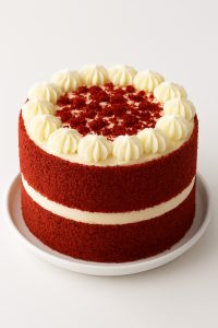 Bescuit vermell intens amb crema suau de formatge, decorat amb encenalls de red velvet. Elegant, esponjós i irresistible.